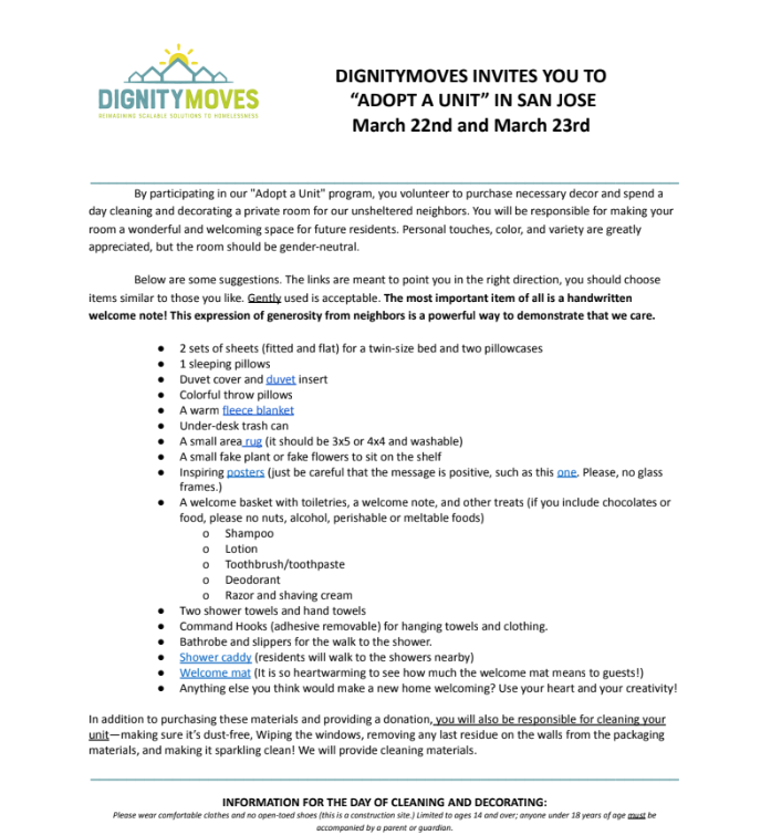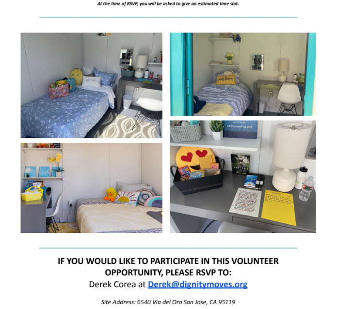 *IF YOU WOULD LIKE TO PARTICIPATE IN THIS VOLUNTEER OPPORTUNITY, PLEASE RSVP TO: Derek Corea at Derek@dignitymoves.org*