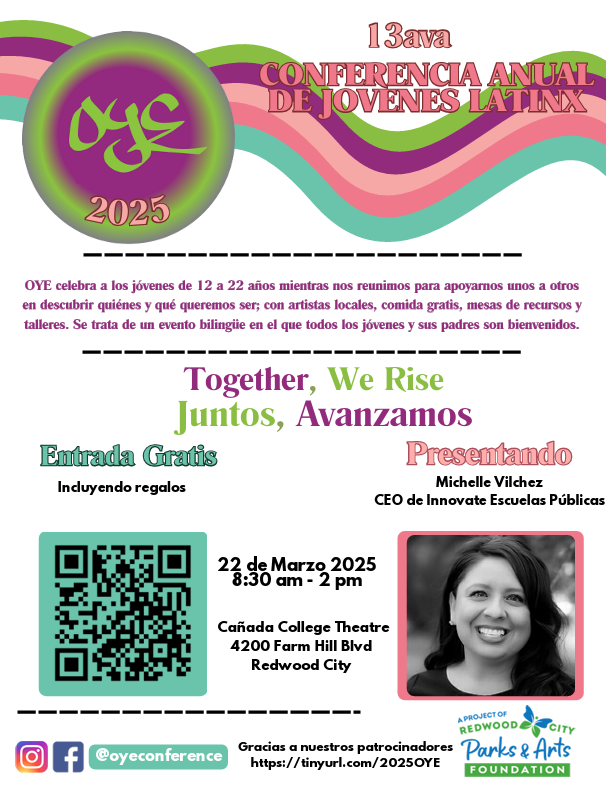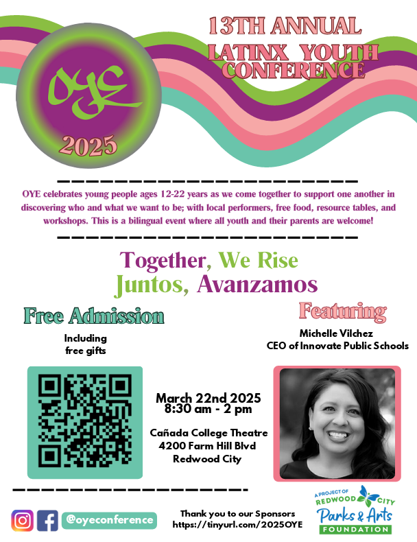 "This year's OYE theme is, “Together, We Rise/ Juntos Avanzamos.” OYE brings together over 400 youth and parents to explore ideas on Latinx culture and identity, obstacles Latinx community members face, and opportunities for the future through interactive workshops, keynote speakers, performers, and community networking.