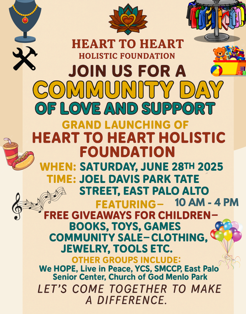 We're thrilled to announce the official launch of Heart to Heart Holistic Foundation, we invite everyone to be a part of our Community Day of Love and Support.