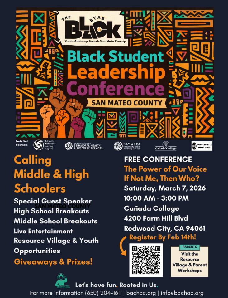 The Black Student Leadership Conference is an empowering event for middle and high school in San Mateo County focused on building leadership skills, confidence, and cultural pride. Through interactive workshops, resource village, and inspiring speakers, students connect, learn, and gain tools to create positive change in their schools and communities.