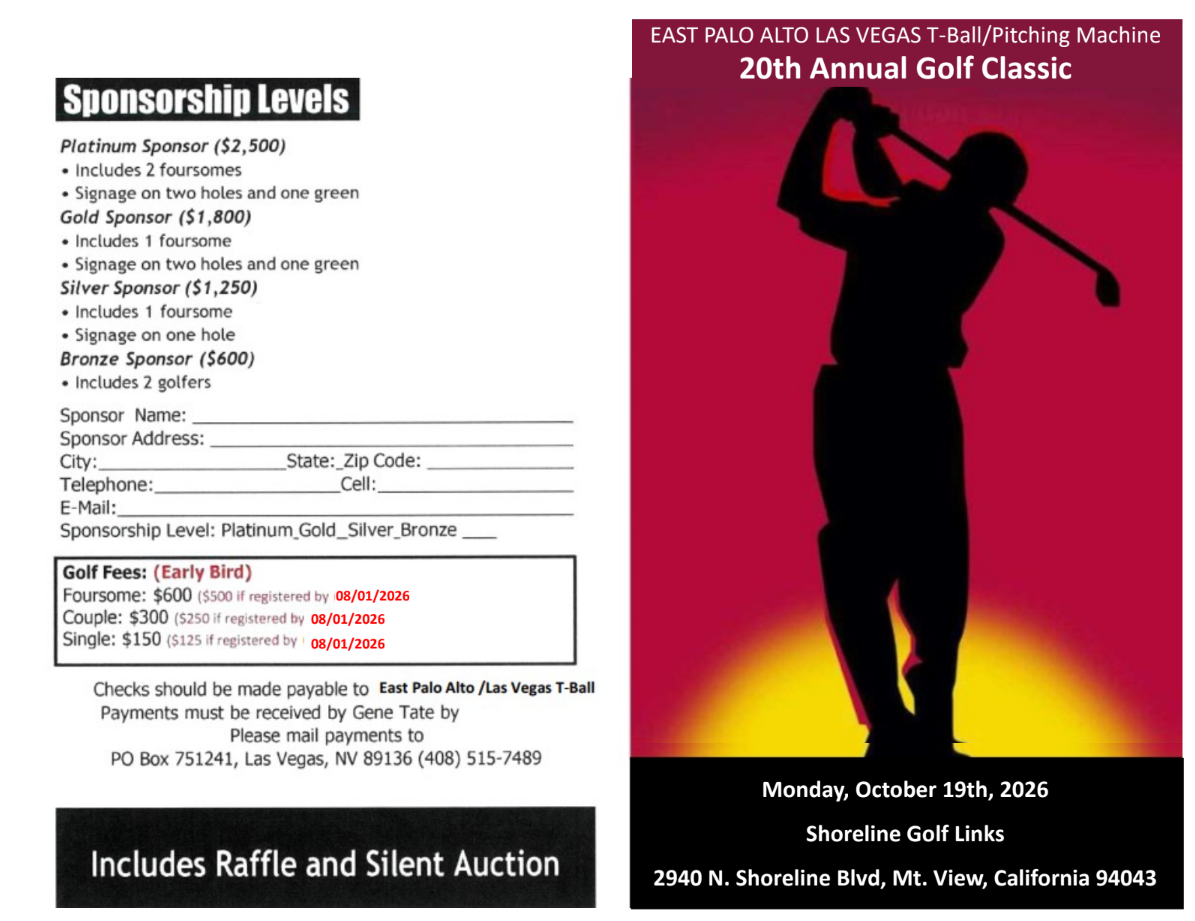 EPA TBall and Pitching Machine is a Non-Profit organization and was founded in 1992 by Gene Tate. Gene and local volunteers reclaimed Jack Farrell Park, turning it into a safe, clean space where more than 2000 young boys and girls have learned the fundamentals of baseball. They expanded the program now running programs in East Palo Alto and Las Vegas. Their mission is to teach basic baseball skills and important values like teamwork and good sportsmanship.